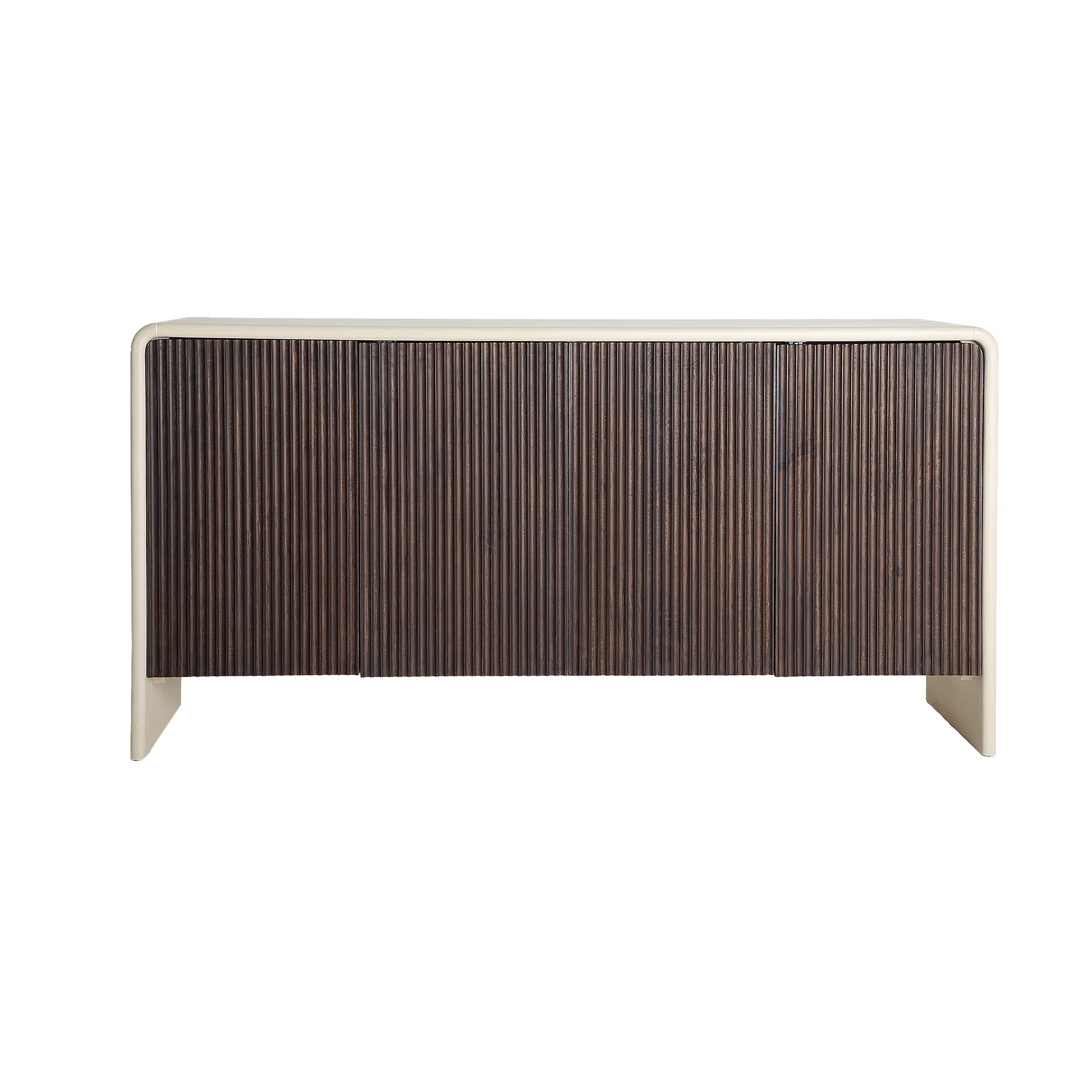 Aparador Milhar de estilo contemporáneo, fabricado en madera de mango en color marrón, combinado con madera dm en color beige.