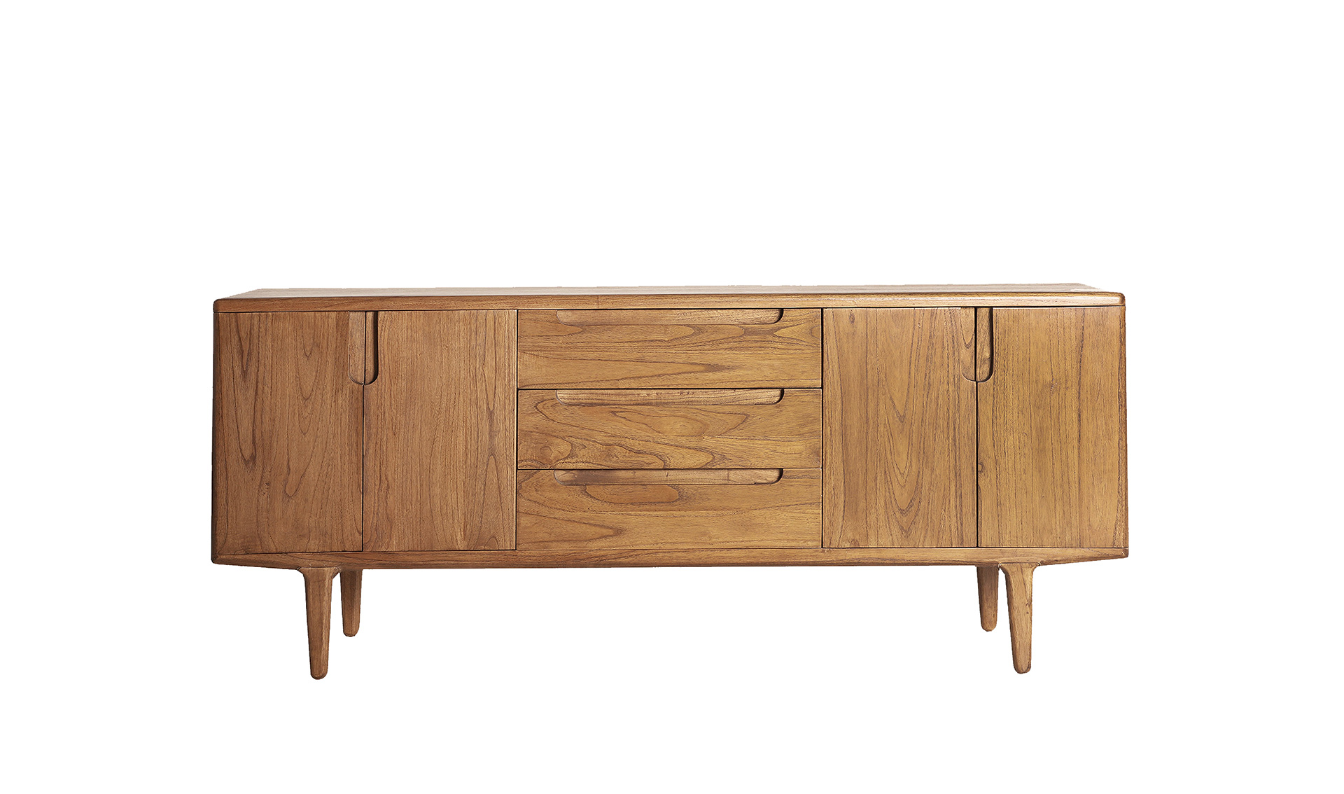 Aparador rectangular slough de estilo nórdico, fabricado en madera mindi en color marrón. Producto desmontable.