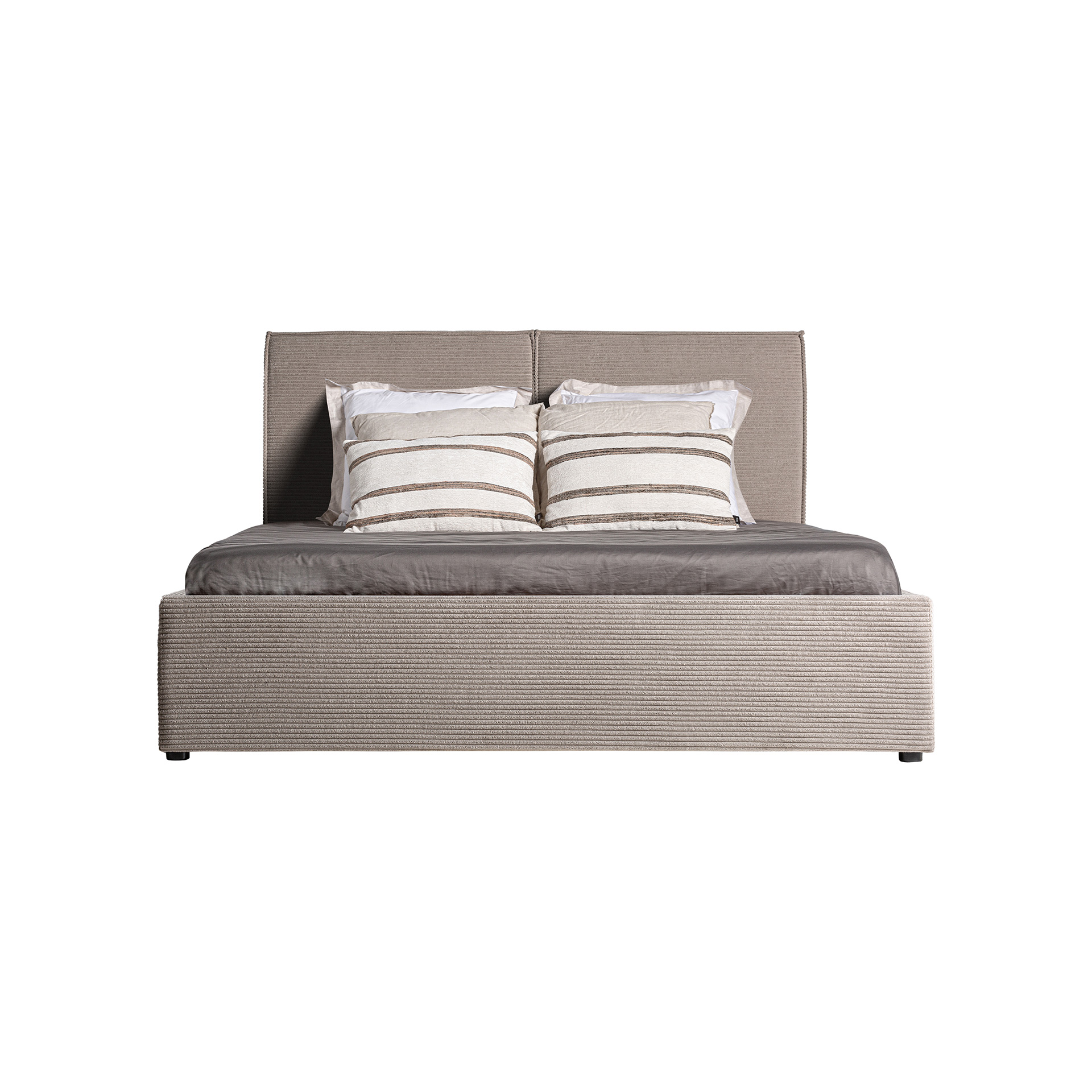 Cama de estilo contemporáneo, fabricado en poliéster en color beige, combinado con madera de pino.