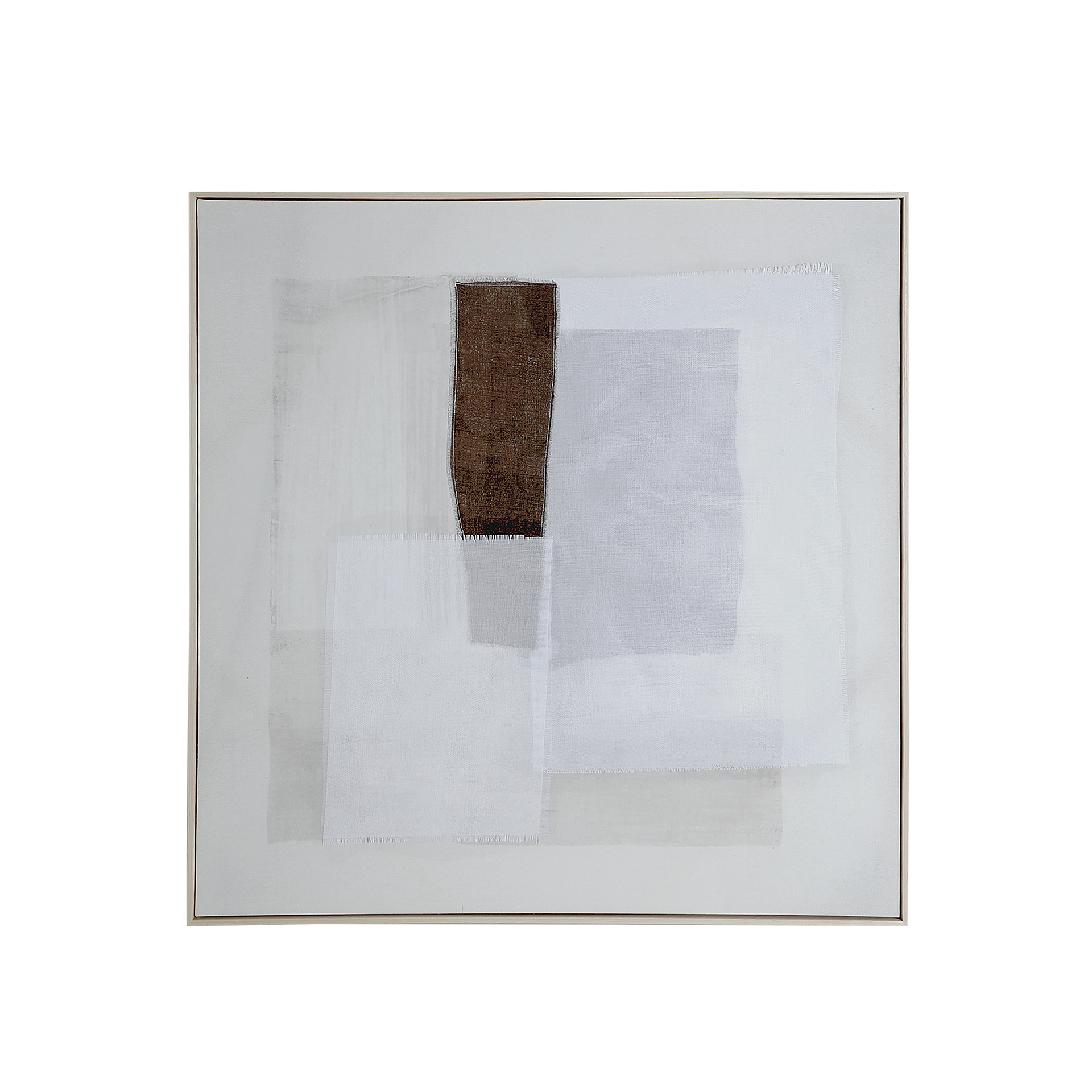 Cuadro, fabricado en lienzo en color blanco, combinado con lino en color beige y madera de pino en color marrón.
