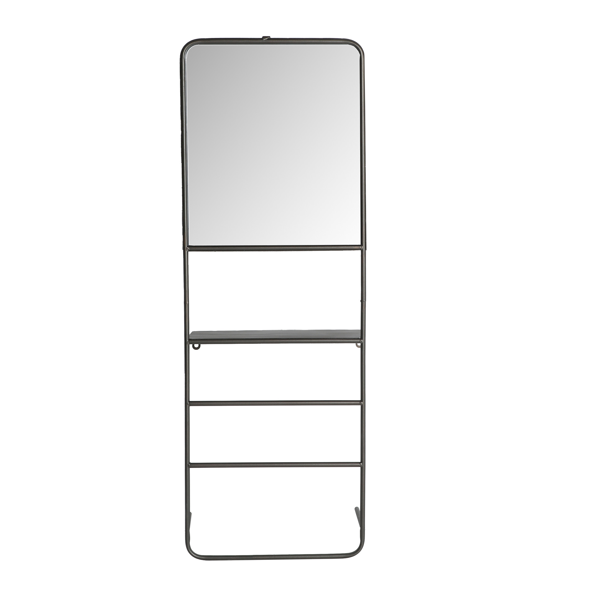 Estanteria rectangular lipari de estilo industrial, fabricado en hierro en color negro, combinado con espejo.