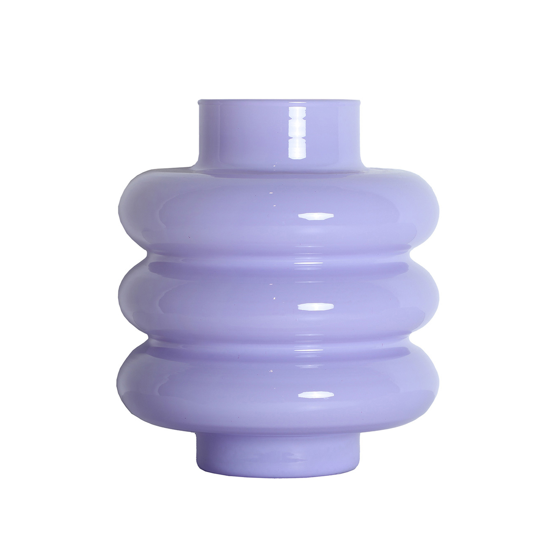 Jarrón Lilya de estilo contemporáneo, fabricado en vidrio en color morado con acabado brillo.