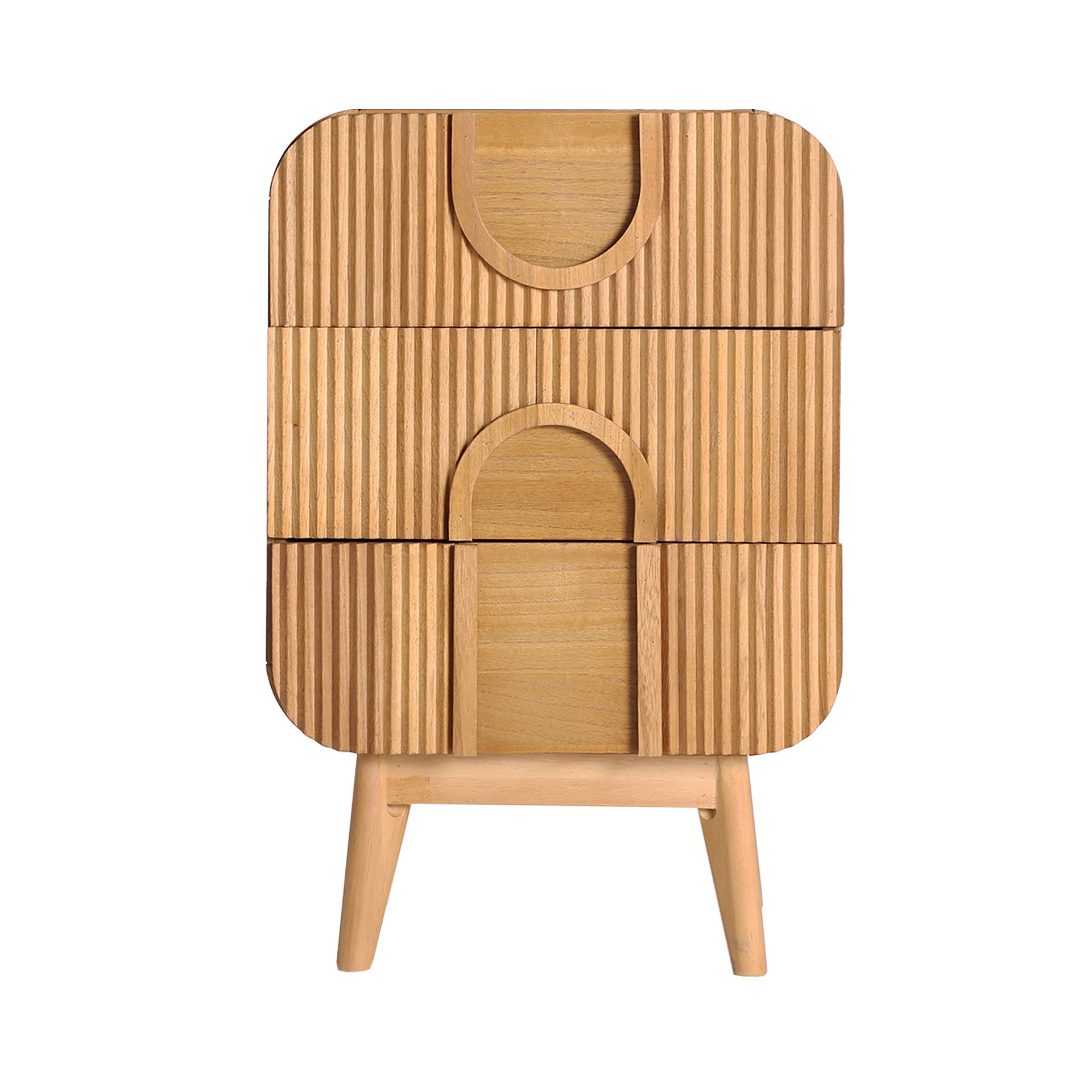 Mesita de noche Valhey de estilo nórdico, fabricado en madera en color marrón claro.